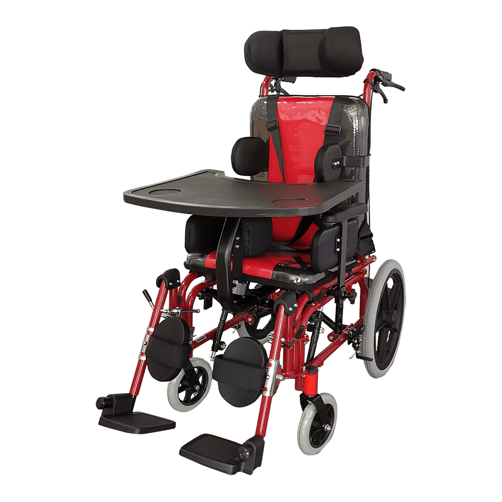 - Reposa pies: Dos reposa pies, desmontables, regulables en altura, abatibles, elevables, en plástico con sujetadores para pantorrilla en lona.