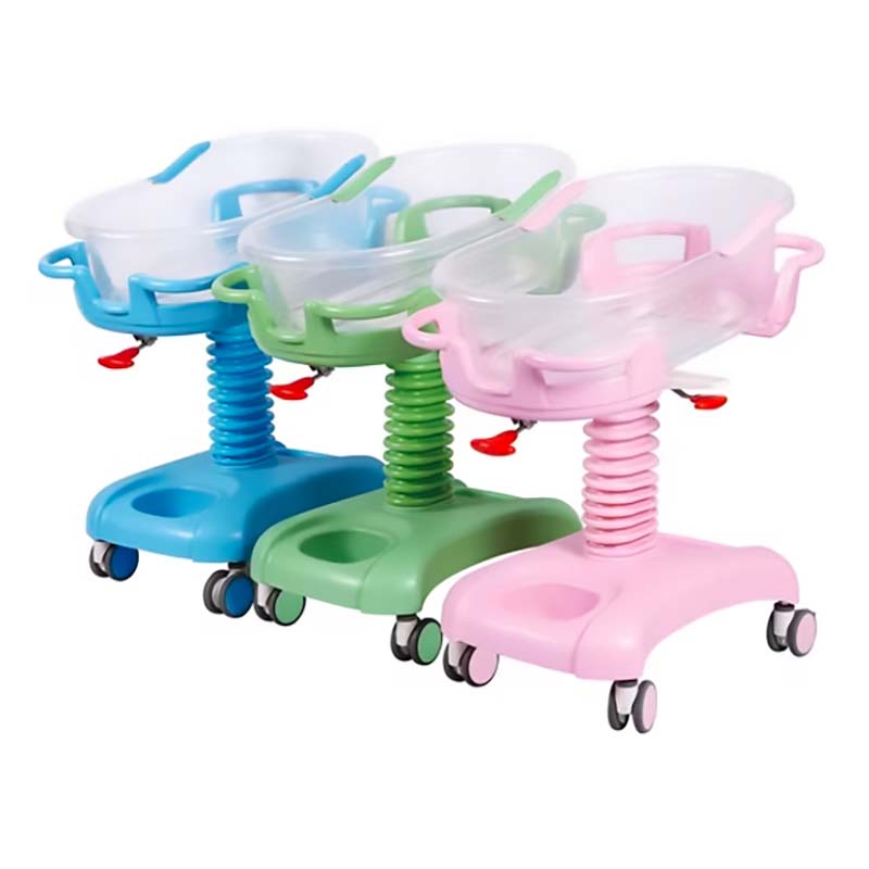 Cuna infantil móvil de plástico ABS de alta resistencia, ideal para uso hospitalario en el departamento de obstetricia y ginecología, así como en unidades de cuidado infantil.